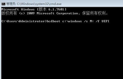 bcdboot c:\windows /s M: /f UEFI 如下图: