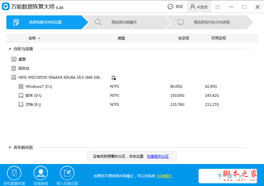 1、在电脑上下载并安装万能数据恢复大师,然后打开该软件。