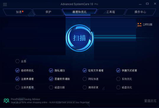 2、Advanced SystemCare 10 Pro是一款系统优化软件,从恶意软件清除到漏洞修复,从注册表清理到垃圾文件清理,对系统进行智能扫描优化。