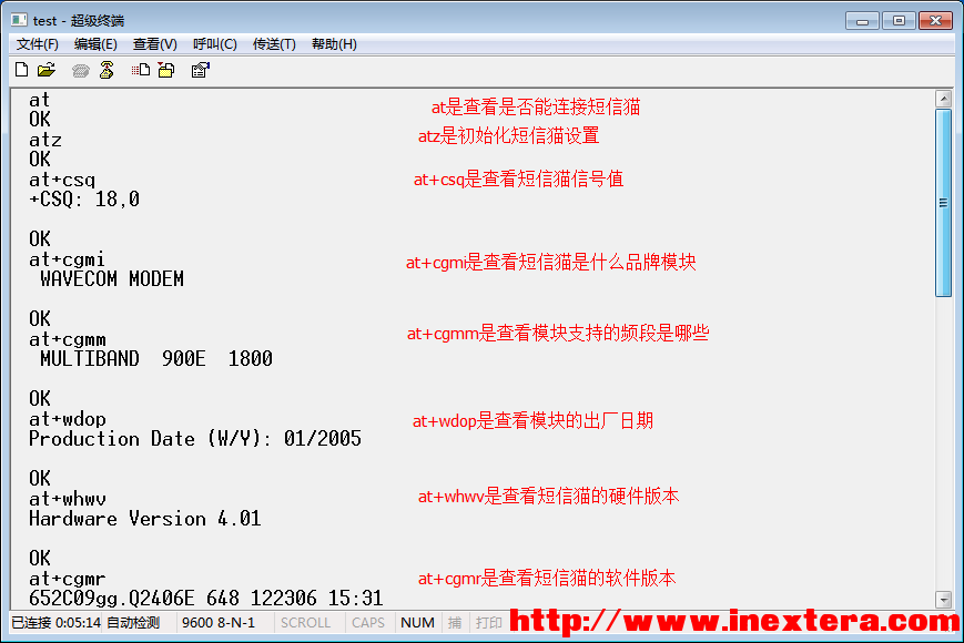 短信猫通过超级终端进行配置和调试的方法步骤: