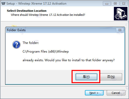 3.当出现“alrady exists would you like install to that folder anyway”(你愿意安装到那个文件夹吗)我们直接点击“是”即可,随后等待安装完成