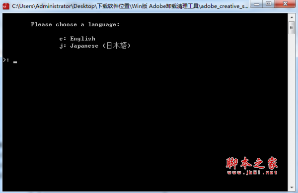 解压后找到AdobeCreativeCloudCleanerTool的主程序:AdobeCreativeCloudCleanerTool.exe,Windows 7的话可能需要右键单击以管理员权限运行,输入e,并按回车键,会进入英文界面模式。