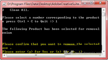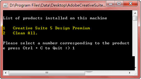 选择一种卸载模式后,Adobe CS5 Cleaner Tool会分析出所有可卸载的程序,如我这里,分析的是Creative Suite 5 Design Premium,如果确定要卸载的话,输入产品前面对应的数字序号(注意不是软件序列号),即输入数字1、并按回车继续。