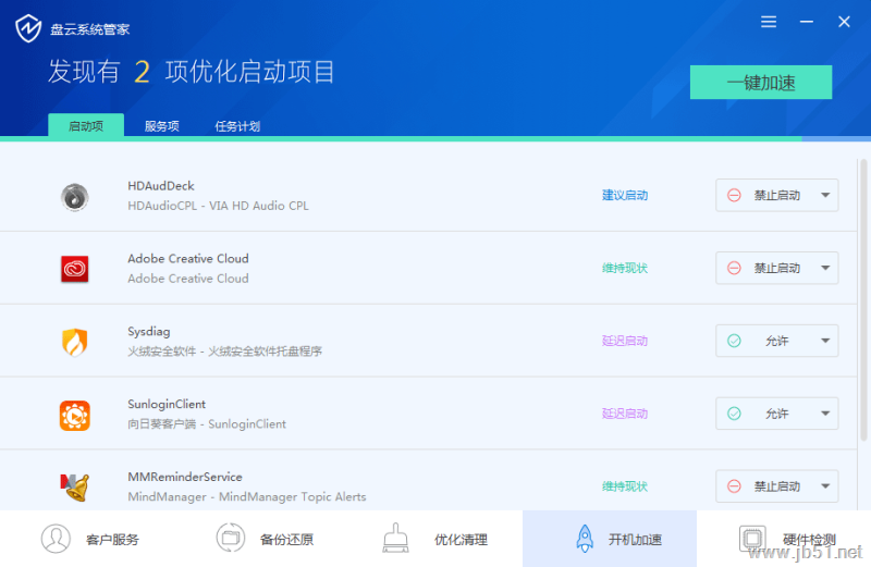 用系统管家开机加速,保留系统自身必要程序和安全软件,其他的就可以根据个人意愿做选择。
