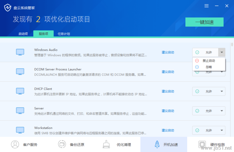 每个程序的用途系统管家都有详细介绍,并给出是否启动的建议。