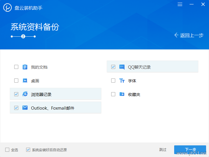 选择您要备份的资料