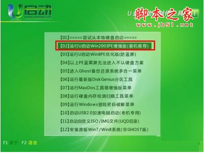 1、将已使用u启动v5.1制作好的启动u盘插入电脑的usb插口,随后开机,在出现开机画面时按下相应的启动快捷键,电脑便会进入启动项的选择窗口,选择usb启动并按下回车键确认即可进入u启动的主菜单界面;如下图所示:
