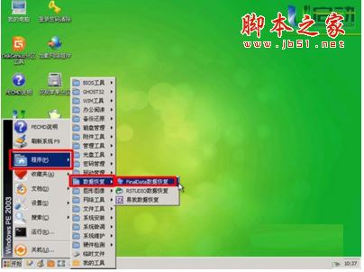 2、在上图所示的u启动主菜单中将光标移至“【02】运行u启动Win2003PE增强版(装机推荐)”并按下回车键即可进入win2003PE系统,随后依次打开开始→程序→数据恢复→FinalData数据恢复即可;如下图所示: