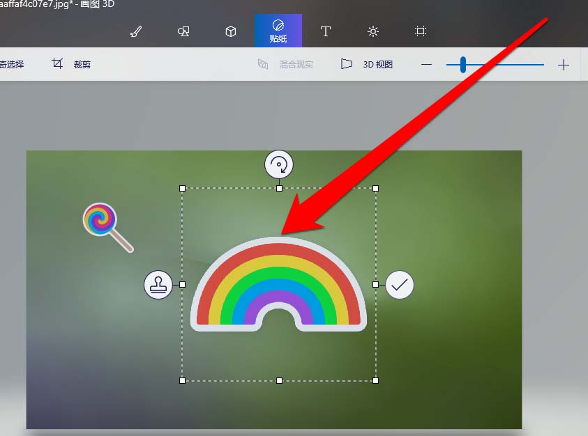 6、将贴贴纸放在图片上,还可以进行操作。