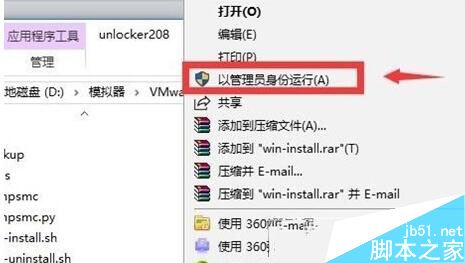 打开unlocker2018文件夹,找到“win-install”执行文件,右键单击“以管理员方式运行”,至安装完毕。