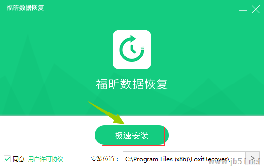 2、选择福昕数据恢复大师安装位置,默认“C:\Program Files (x86)\FoxitRecover\”,可以点右箭头修改