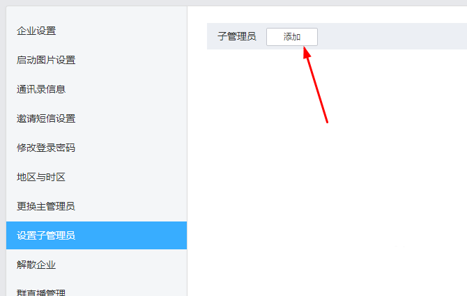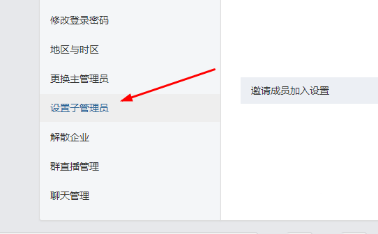 2、进入设置界面,在左侧的菜单中选择【设置子管理员】