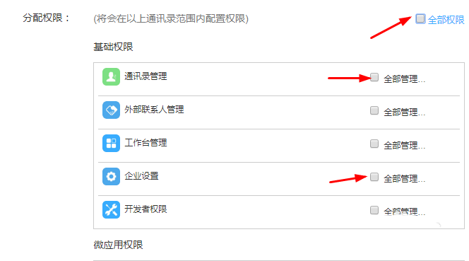 6、分配权限,设置只些模块中有管理权限,在对应右边的全部管理选中即可。