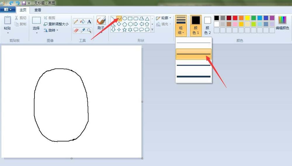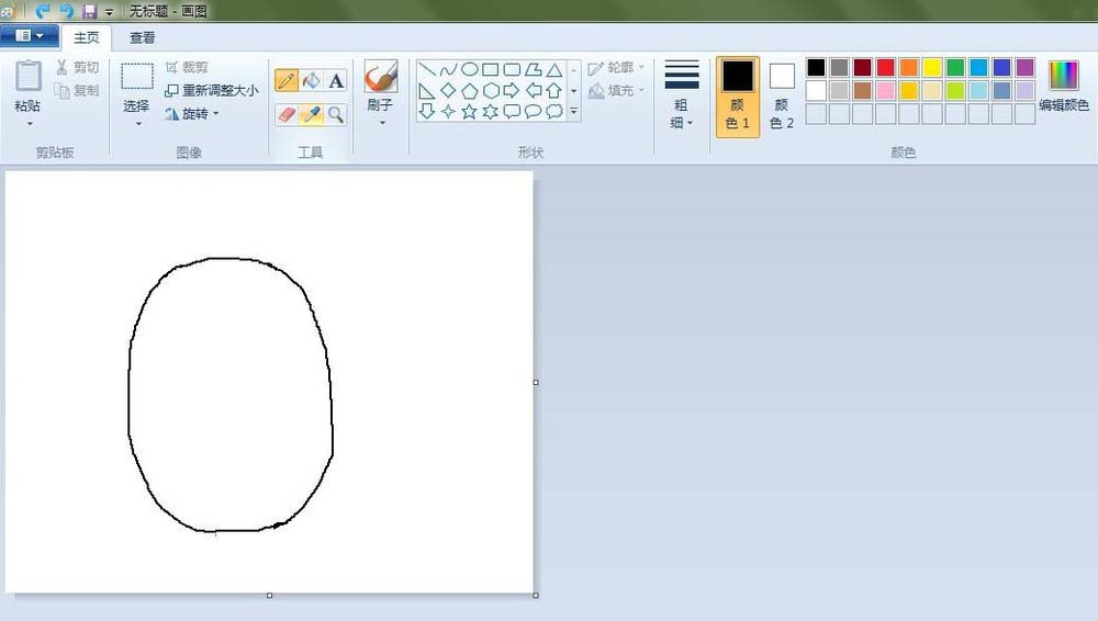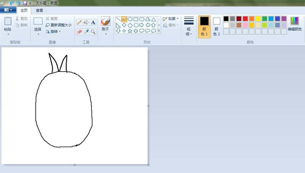 2、菠萝身:点击“铅笔”按钮,线条粗细(第二个),先在“画纸”适当位置上画一个有点方的椭圆。