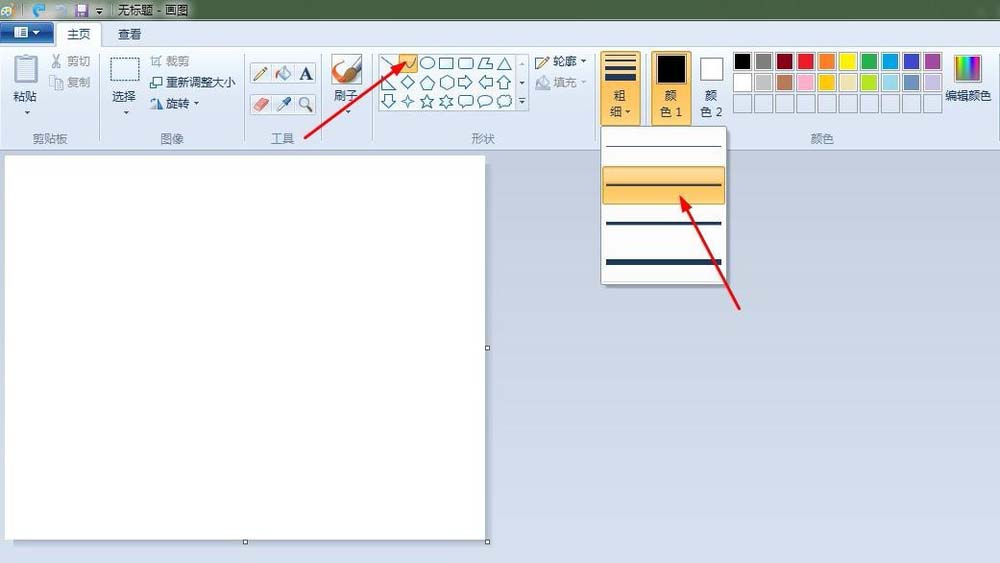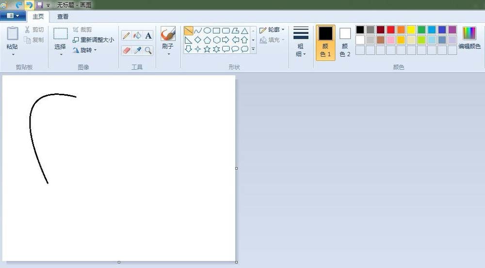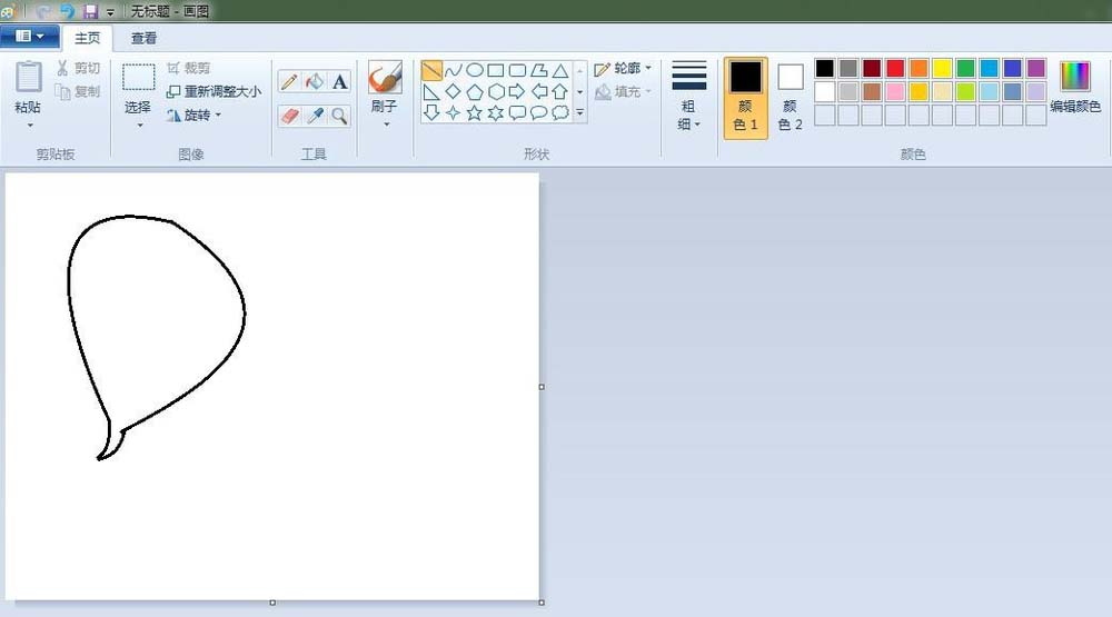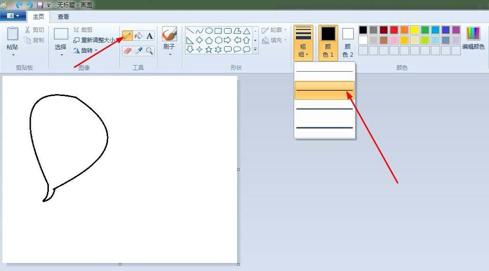 2、萝卜:点击“曲线”按钮,线条粗细(第二个),先在“画纸”适当位置上画出一条曲线,之后画出整个萝卜。