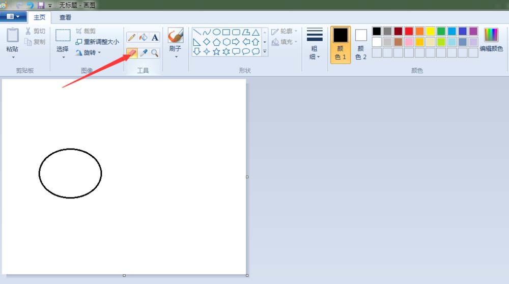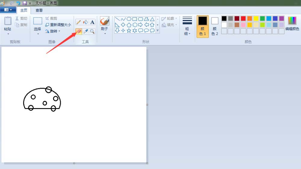3、点击“椭圆形”按钮,如图的地方画上小椭圆;点击“橡皮擦”按钮,将多余的地方擦掉;
