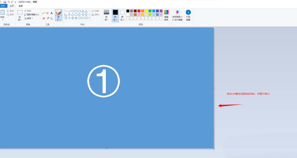 2、打开后调整显示的大小。打开后默认可能会显示的很大,按住Ctrl建,滚动鼠标的滚轮,将图片缩小一些,这样方便我们调整画布的大小。