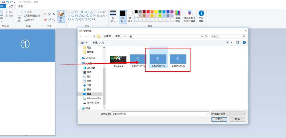 4、粘贴第二张图片。选择工具栏中的粘贴--粘贴来源,选择你的图片文件,一次只能选择一张,注意排列的顺序,不要弄乱了。