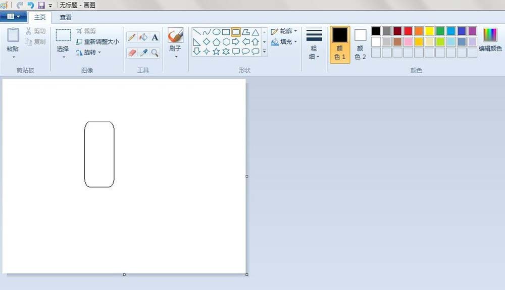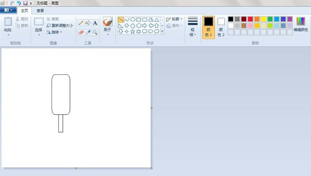 2、冰棒轮廓:点击“圆角矩形”按钮,线条粗细(第一个),先在“画纸”适当位置上画上一个长形的圆角矩形。