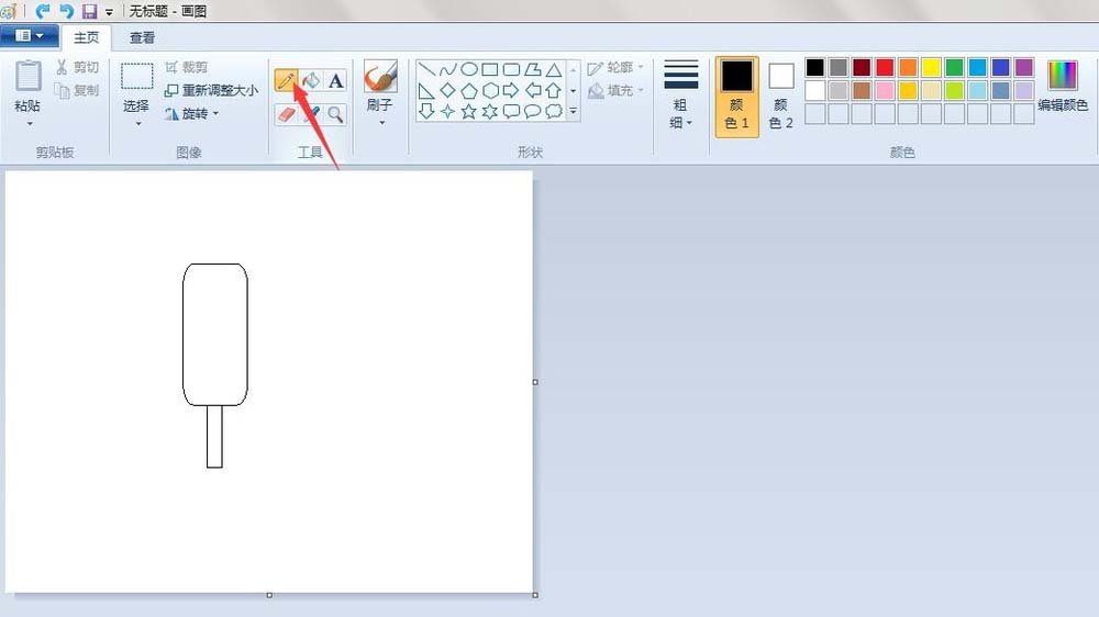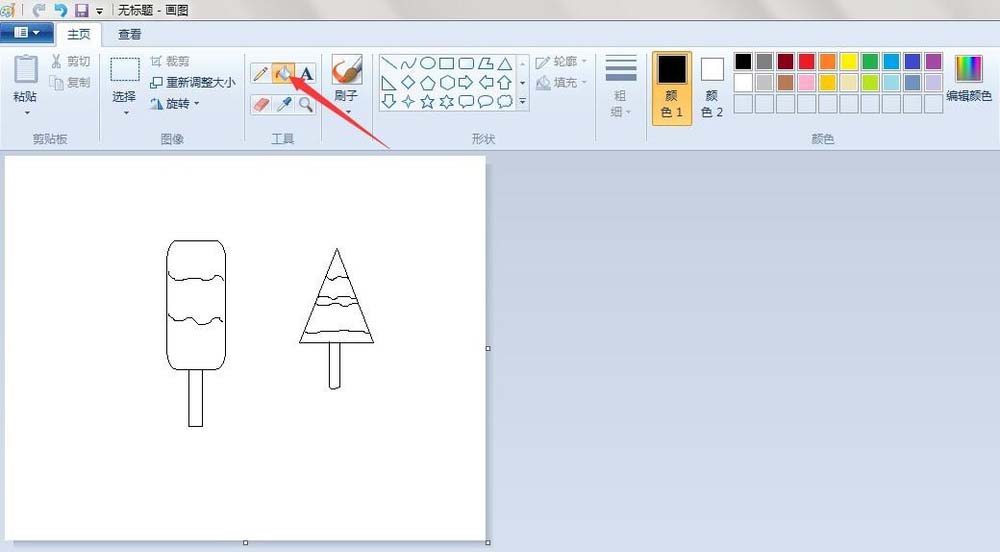 8、填充颜色:点击“用颜色填充”按钮,给画好的冰棒填充上颜色(按个人喜好)。