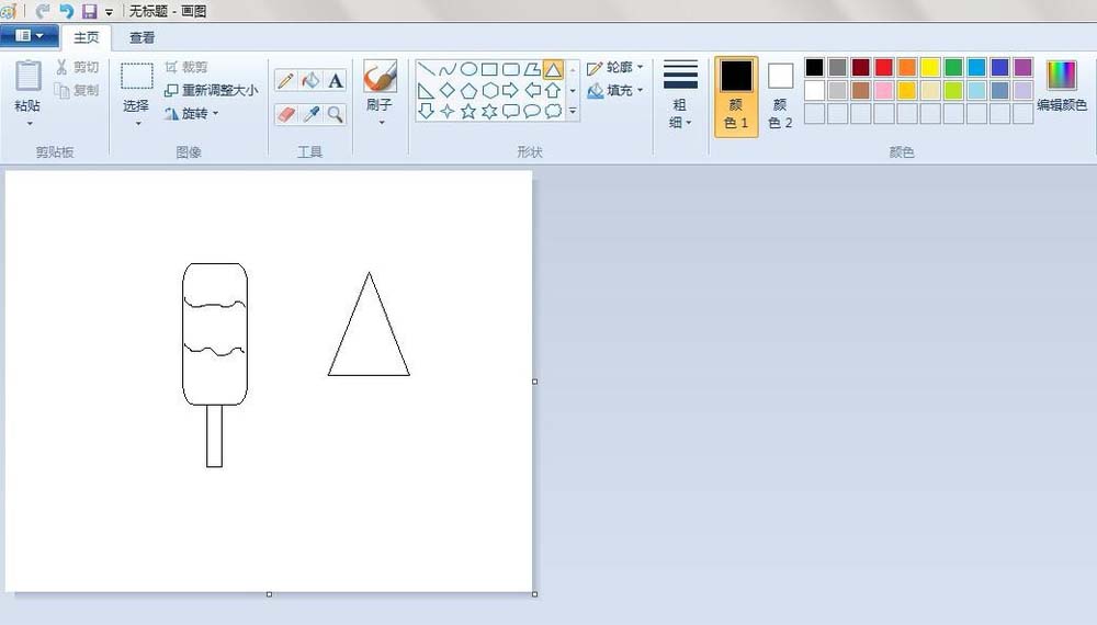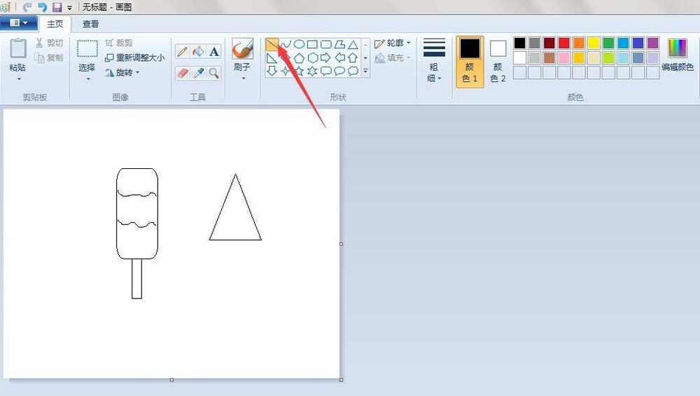 5、第二只冰棒轮廓:点击“三角形”按钮,画一个三角形。