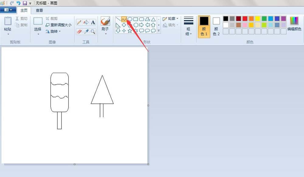 4、冰棒造型:点击“铅笔”按钮,在画好的冰棒上画两条弯弯曲曲的线条。