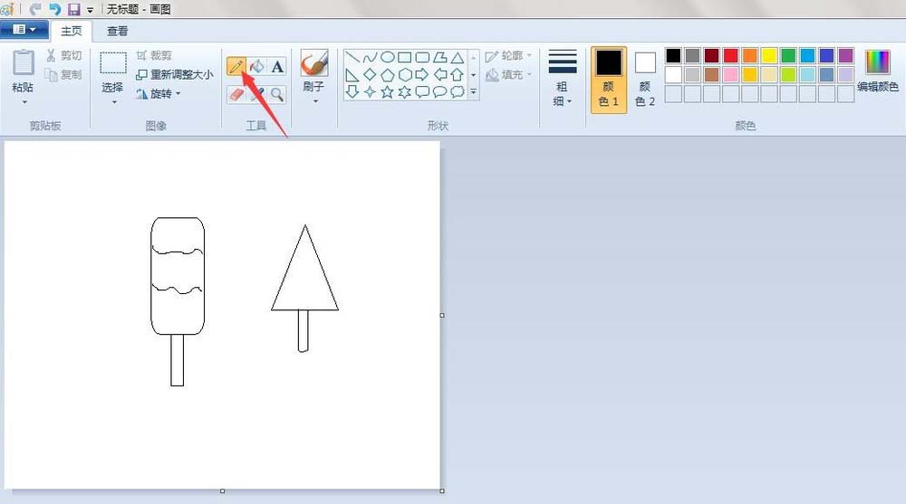 7、冰棒造型:点击“铅笔”按钮,在画好的冰棒上画几条弯弯曲曲的线条。