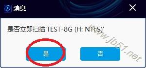4、弹出对话框,提示“是否扫描TEST-8G(H:NTFS)”,点“是”,软件扫描H分区数据。