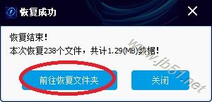 8、恢复完成,弹出提示信息。点“前往恢复文件夹”,可以到恢复文件夹看刚才恢复的文件。