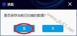 13、扫完结束,弹出提示“是否保存当前已扫描的数据”,点“是”,方便下次复用扫描结果。