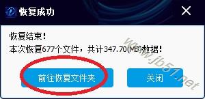 8、恢复完成,弹出提示信息。点“前往恢复文件夹”,可以到恢复文件夹看刚才恢复的文件。