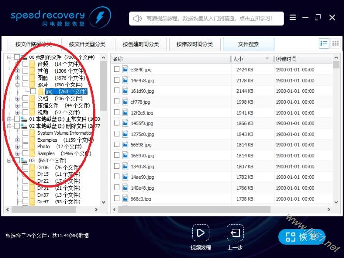 9、下图为刚才恢复的文件。可以看到,刚才勾选的文件已经全部恢复成功,恢复出来的文档、照片、视频都可以正常预览、打开。