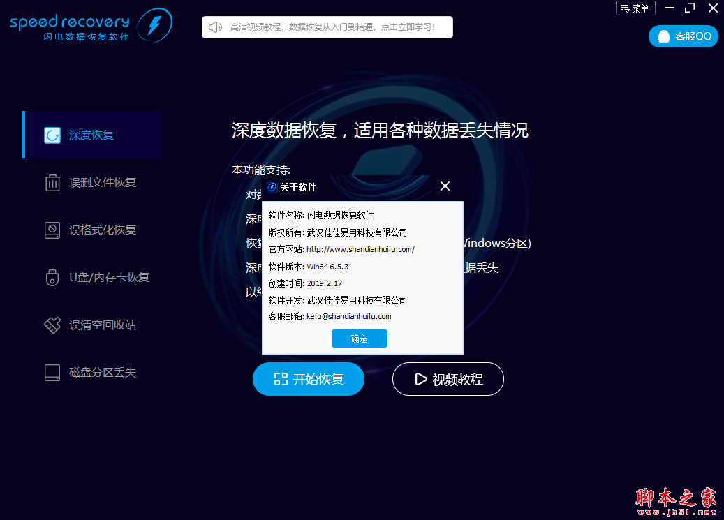 1、下载、安装、运行闪电数据恢复软件。点击立即下载 注意:请不要将软件下载或安装到有数据需要恢复的分区里,以免造成二次破坏。