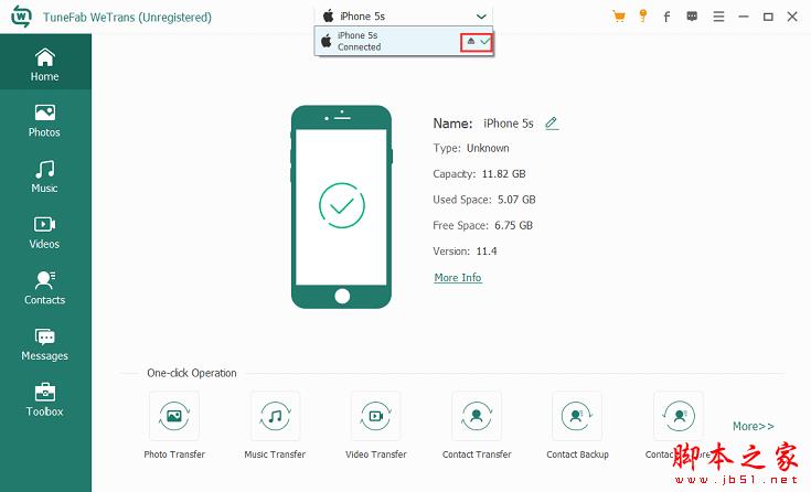 注意:完全管理iPhone数据后,请不要忘记单击箭头形按钮以安全弹出设备。
