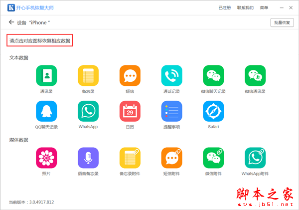 以上便是小编为大家分享的关于开心手机恢复大师恢复苹果手机微信数据的方法介绍,希望能够帮到你,建议大家平时还是要多对重要的数据进行备份。,脚本之家会持续发布更多资讯,欢迎大家的关注。