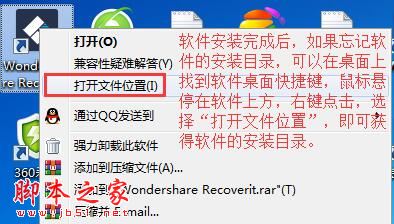 1、代开软件安装目录,如果安装目录忘记,可以在桌面上找到软件桌面快捷键,吧鼠标悬停在软件上面,右键点击,选择“打开文件位置”,即可快速获得软件安装目录。