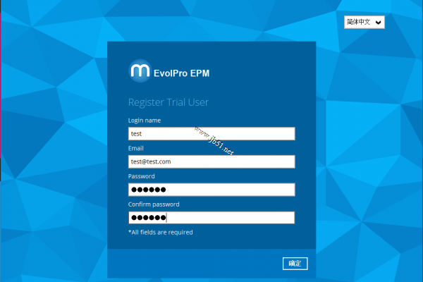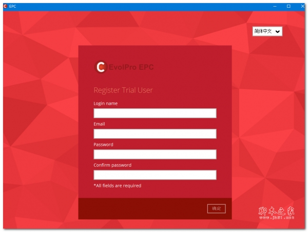 选择中文,试用登录,填写试用资料