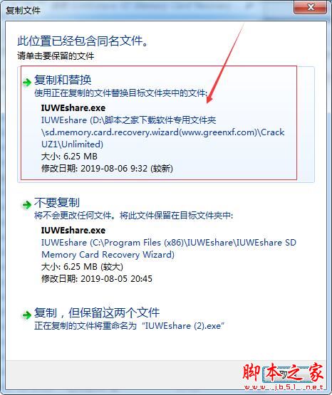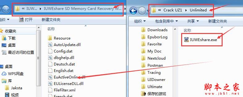 7、在Crack UZ1文件夹中找到破解补丁文件,大家可根据自己的实际需要进行版本选择,Unlimited旗舰版和AdvancedPE版本,破解方法是一样的,本次小编以Unlimited旗舰版为例,将IUWEshare.exe复制到安装目录中(C/Program Files(86)/IUWEshare/IUWEshare SD Memory Card Recovery Wizard)