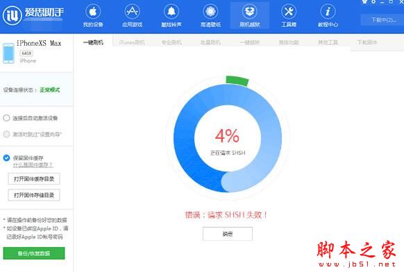 爱思助手刷机时提示请求SHSH失败的解决方法。大家在使用爱思助手时,会遇到提示请求SHSH失败的问题,下面脚本之家小编就讲解爱思助手刷机时提示请求SHSH失败的解决技巧,不知道的朋友一起看看吧!
