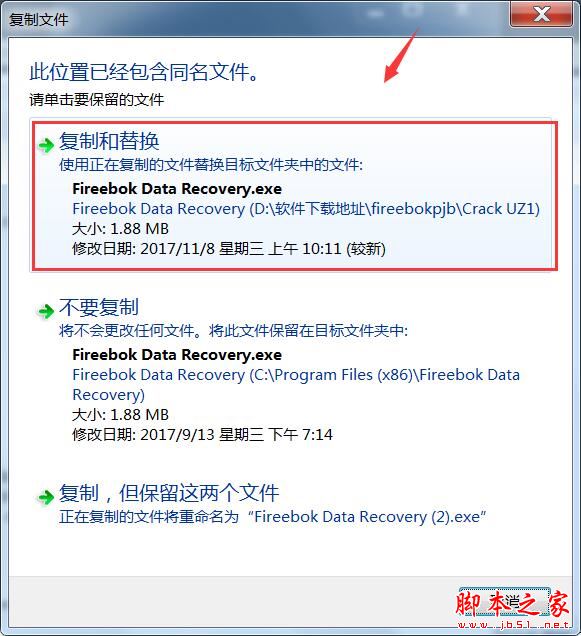 8、将软件包内Crack UZ1文件夹里粘贴到软件安装目录里(默认C:\Program Files (x86)\Fireebok Data Recovery)