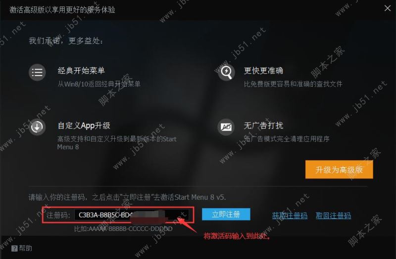 9.将脚本之家提供给大家的激活码输入进去(激活码在压缩包内。),如图