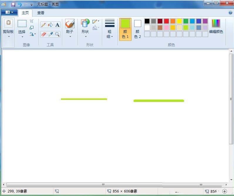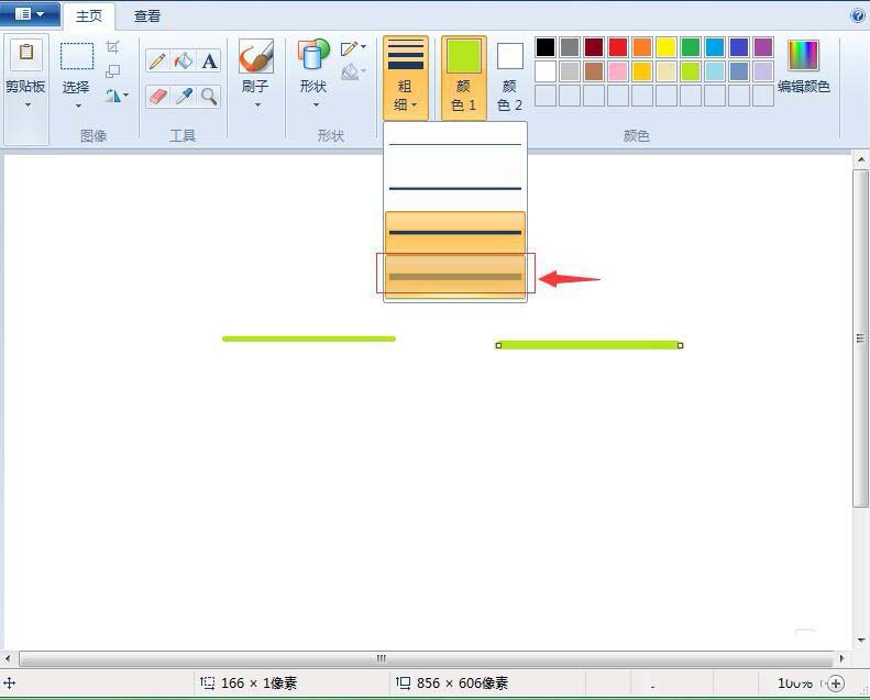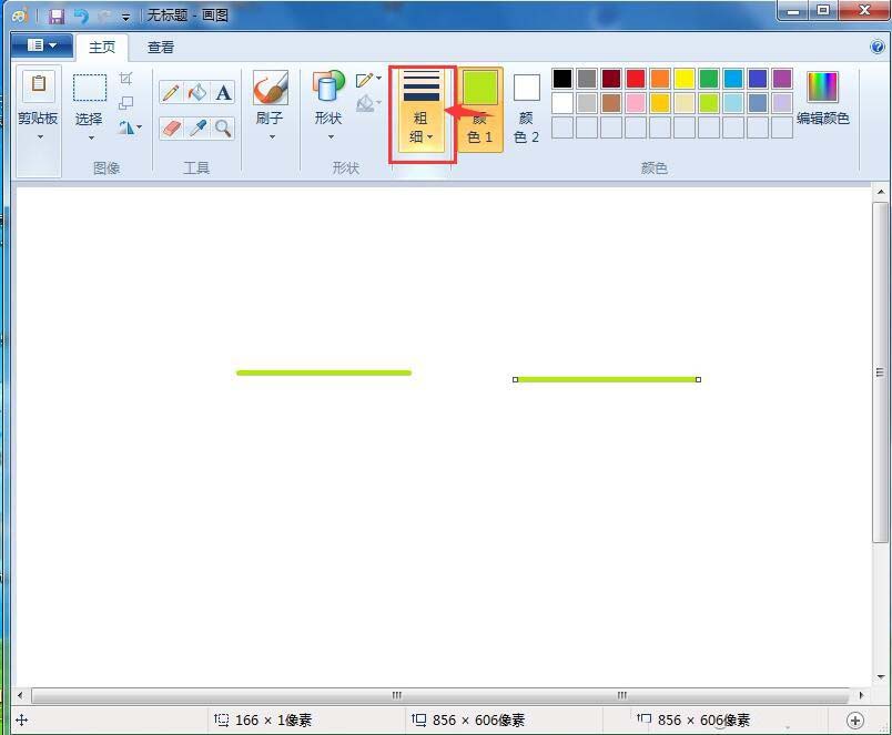 8、我们就将第二条直线变粗了,用这种方法,我们就可以在画图中画好直线,并设置好线条的粗细。