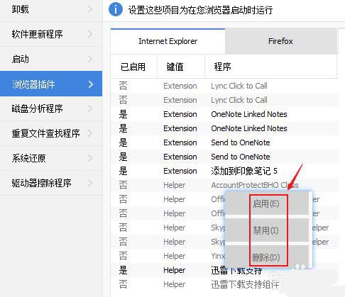 3、点击浏览器插件,里面包含的是系统中安装的浏览器中所安装的插件。可以对这些插件进行关联操作。