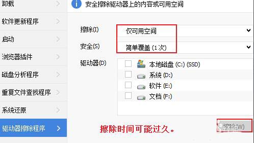 6、驱动器擦除比较耗费时间且 麻烦,一般不用。