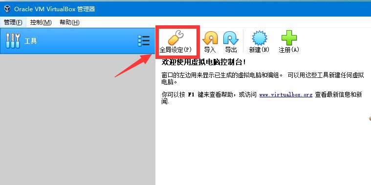 1、全局设置打开virtualbox软件,找到如图位置。点击“全局设置”
