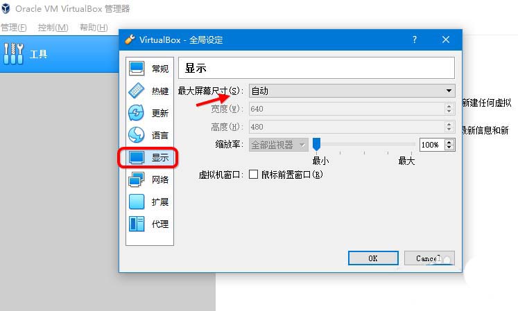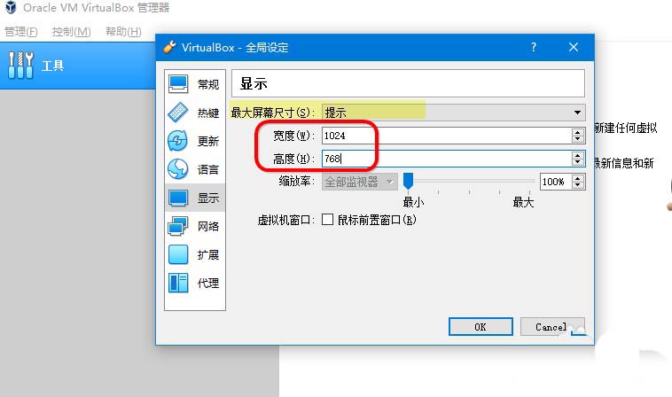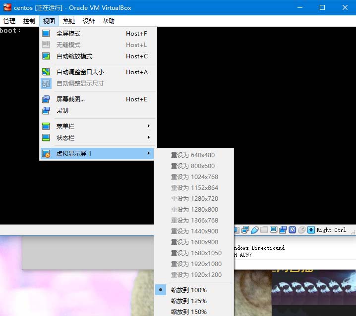 8、此外还支持virtualbox显示缩放,可以选择自定义的缩放比例。