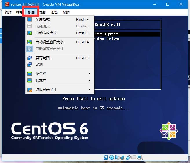 6、virtualbox怎么全屏刚刚上述是分辨率的调整,怎么来实现virtualbox快速全屏。或者调整缩放,找到菜单--视图。