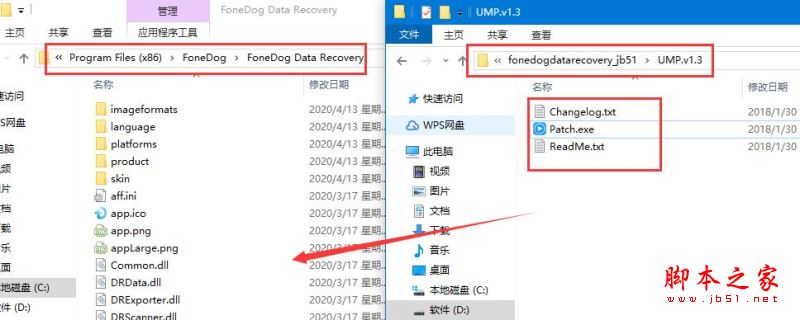 9、将软件包里UMP.v1.3的所有文件粘贴到软件安装目录里(默认C:\Program Files (x86)\FoneDog\FoneDog Data Recovery)