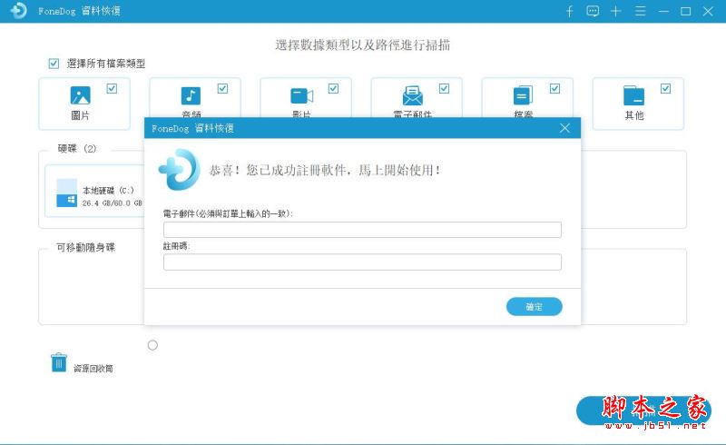 以上便是脚本之家小编为大家分享的"电脑数据恢复软件FoneDog Data Recovery安装及激活图文教程"的全部内容,希望能够帮到你,脚本之家持续发布更多资讯,欢迎大家的关注。