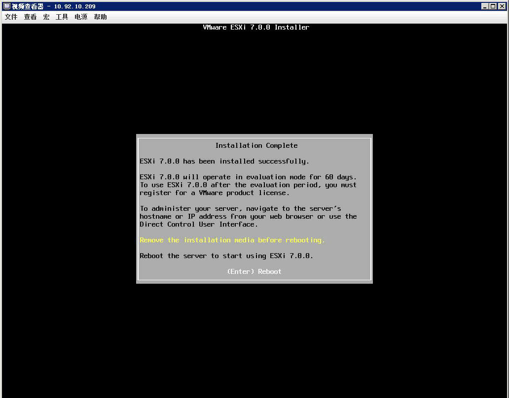 13、安装的时间取决于服务器的性能,等待一段时间后即可完成VMware ESXi 7.0的安装,按【Enter】键重启服务器。
